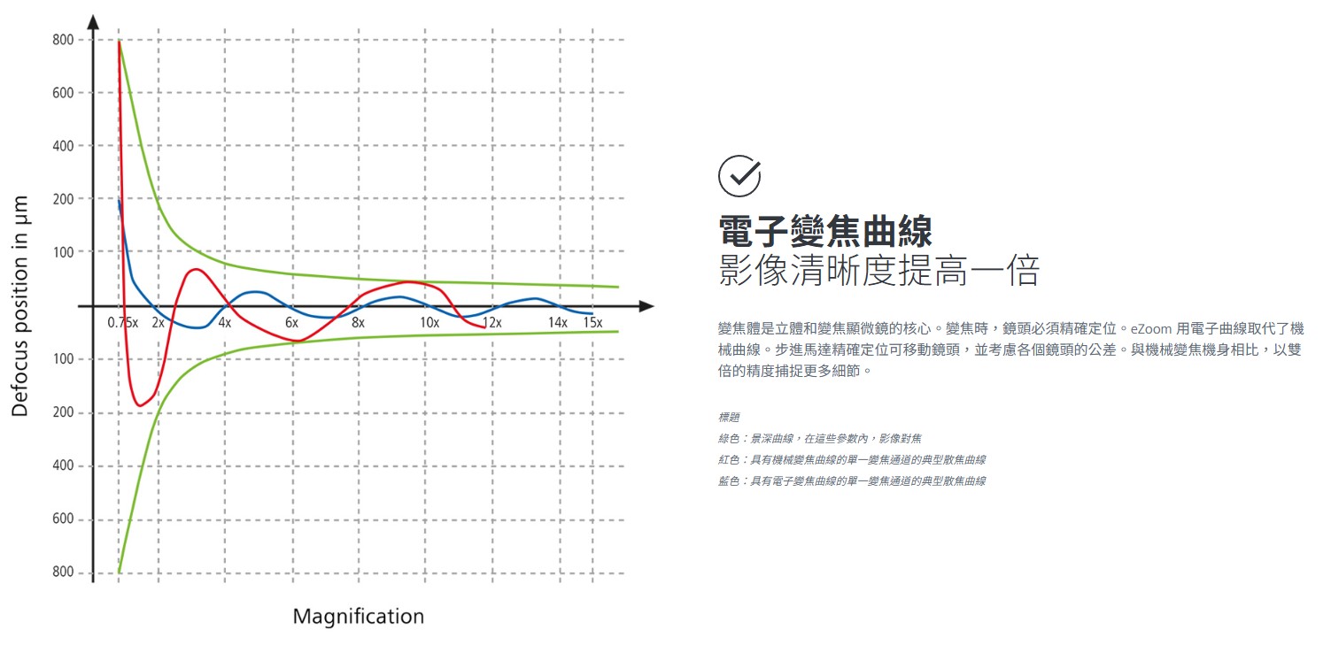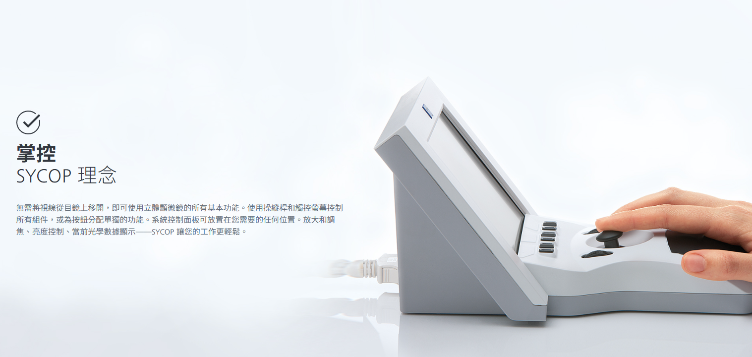 20:1 的靈活變焦範圍,讓您從最廣的概覽到最細微的細節都能清晰呈現。獲得具有出色深度感知的出色三維影像。選擇理想的放大倍率,或使用 eZoom 移動到使用者定義的變焦位置。變焦位置重現精度高達 99% 以上!使用 SYCOP 觸控螢幕輕鬆控制放大倍率、對焦、對比和亮度。