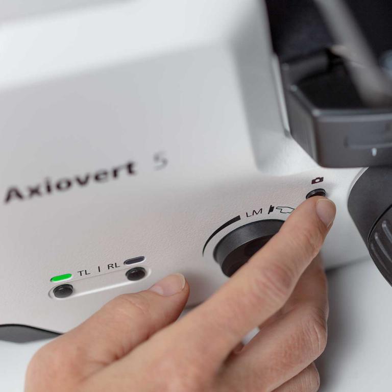 Axiovert 5 在你的日常工作中持續支援。只要專注看著你的樣本:你可以單手操作所有主要控制。Light Manager 在所有放大倍率下都能提供均勻亮度,省去了在更換物鏡時手動調整燈光強度的麻煩。為了進一步提升細胞程序的速度與可靠性,請選擇 Labscope 中的 AI 細胞匯聚與 AI 細胞計數模組。你會即時獲得細胞上的資訊。